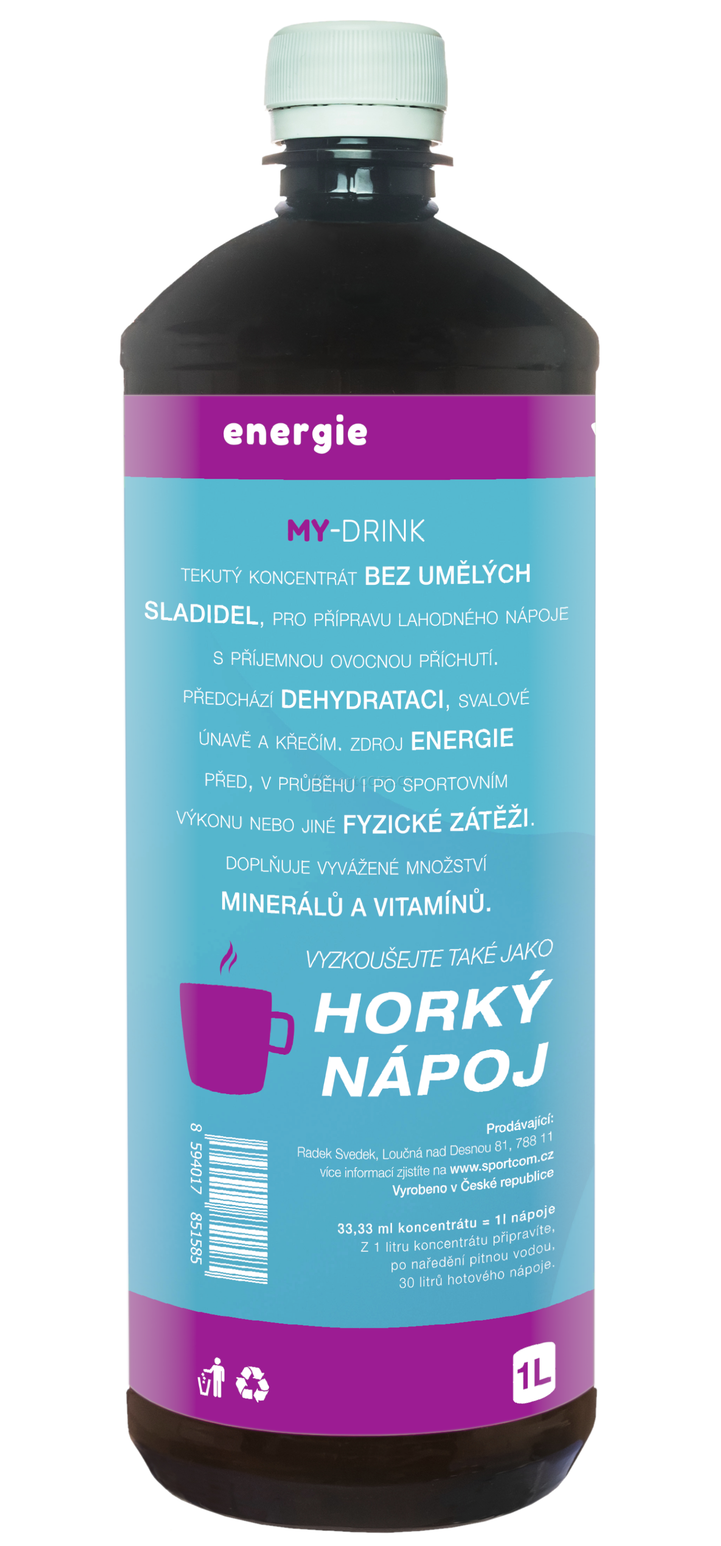 Nově upravený lahodný nápojový koncentrát vhodný pro mládež, dospělé i seniory Sportcom MY- DRINK Lesní Směs 1000 ml.