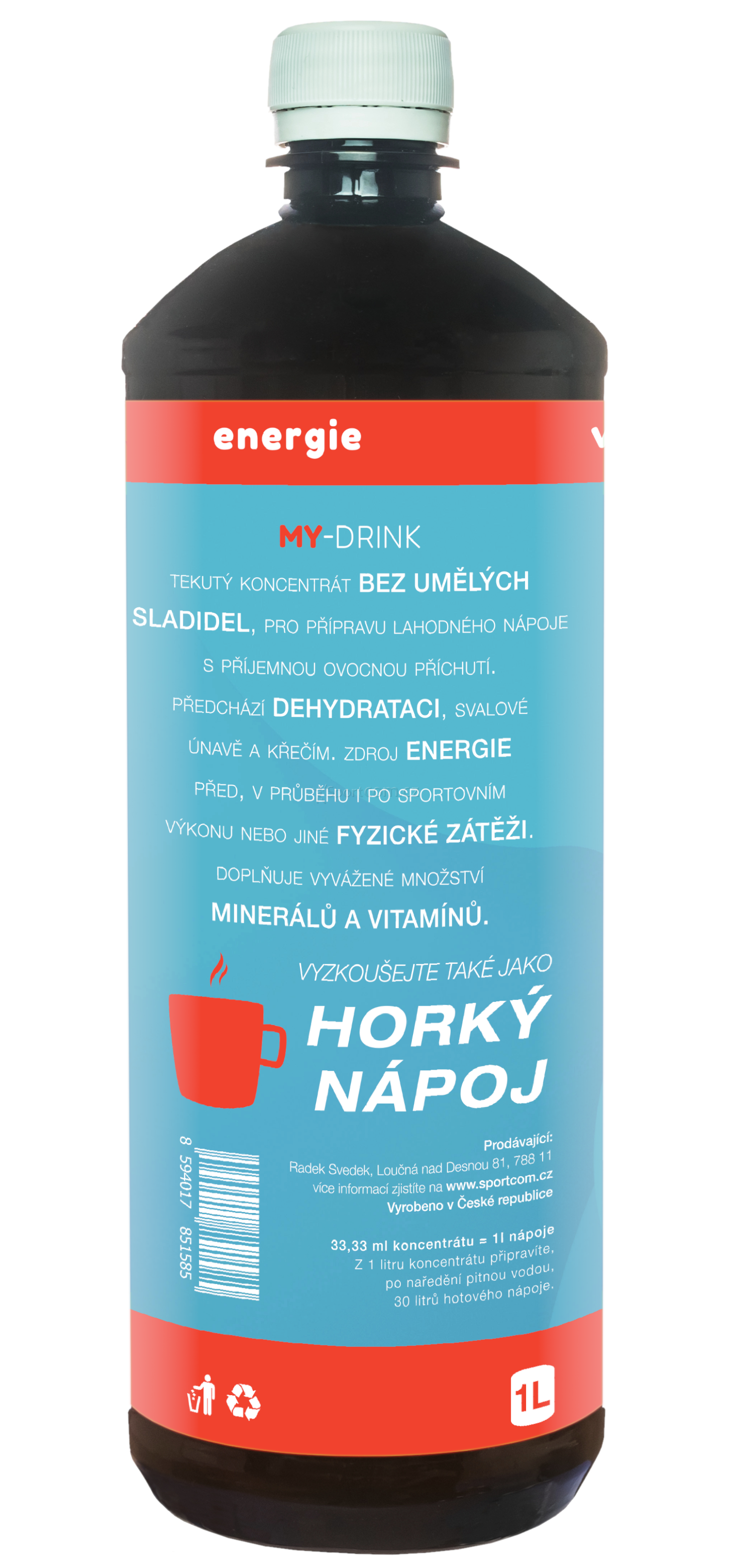 - Sportcom MY- DRINK: je lahodný tekutý nápojový koncentrát 1000 ml s příjemnou ovocnou příchutí, vhodný pro mládež, dospělé i seniory